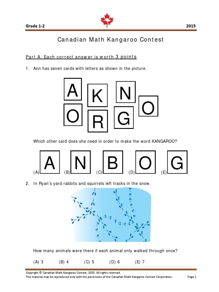 Singapore Math Kangaroo Contest P3&4 (20132017) OpenSchoolbag Math Kangaroo Type Questions table of contents. What is the kangaroo math test? You can click to download these pdf paper files. math kangaroo sample questions. How to prepare for math kangaroo test. pdf exams from previous years. Take a look at these sample questions before attempting the test as they give you a very good idea of. math kangaroo. Math Kangaroo Type Questions.